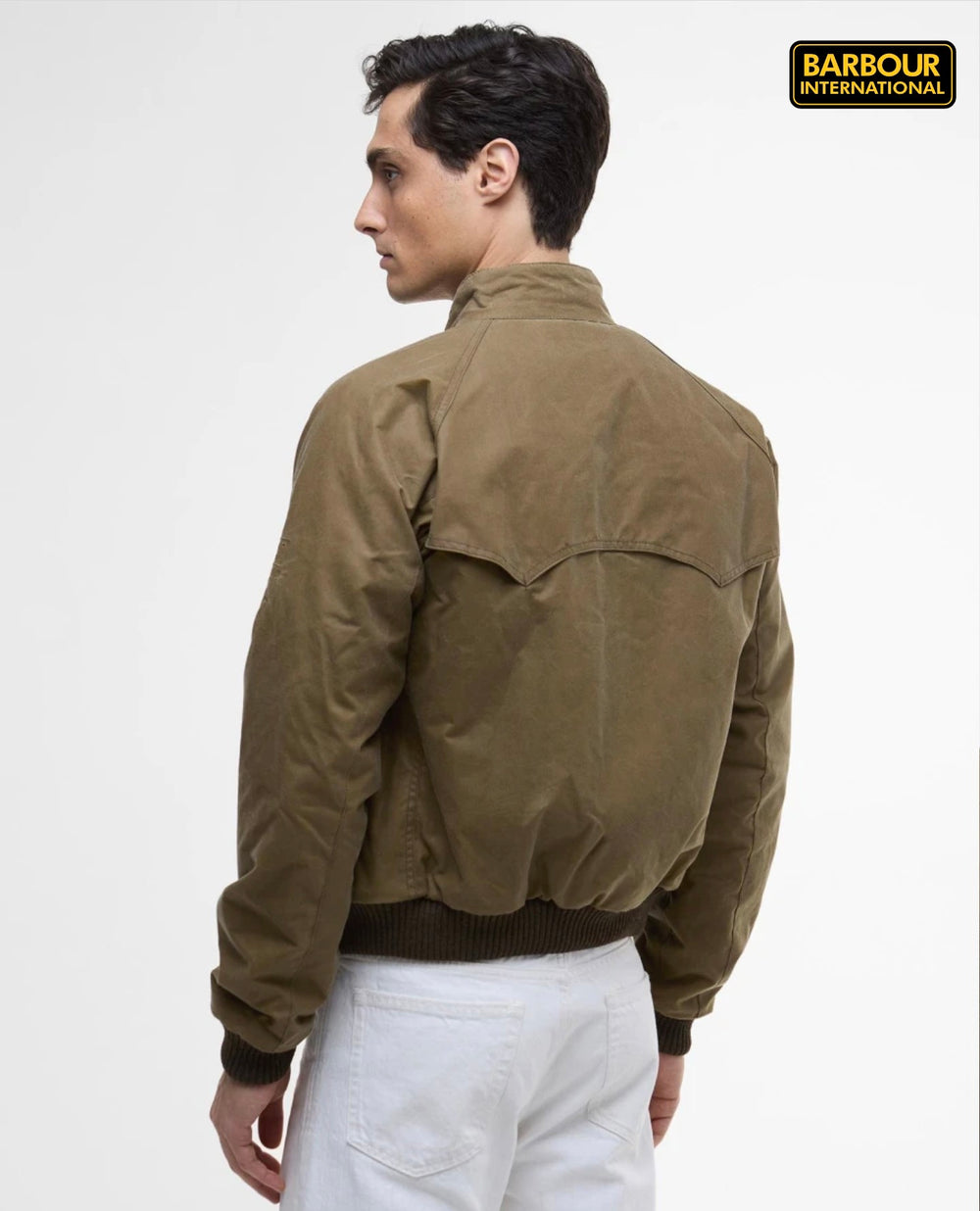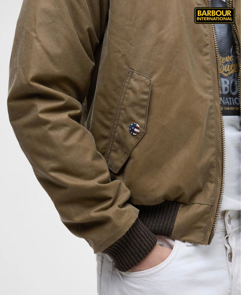 Issue de la collection Steve McQueen™ International, la veste Merchant est une veste cirée de style bomber, confectionnée en coton ciré résistant, inspirée des vestes portées par l'acteur et pilote américain. Résistante au quotidien, la Merchant est une veste simple et robuste, de poids moyen, avec une doublure en nylon matelassé pour plus de chaleur. Son col cheminée doublé de velours côtelé et fermé par des boutons-pression lui confère le look International classique. Le tissu côtelé aux manches et à la taille offre une protection supplémentaire contre le vent, tandis que les poches obliques fermées par des boutons-pression vous permettent de garder les mains libres.