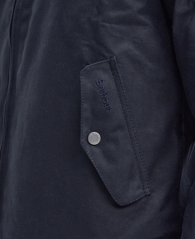 • Veste Porton Wax Barbour x Baracuta : réinterprétation contemporaine de la mythique Harrington G9, en coton ciré, avec dos parapluie et détails emblématiques.