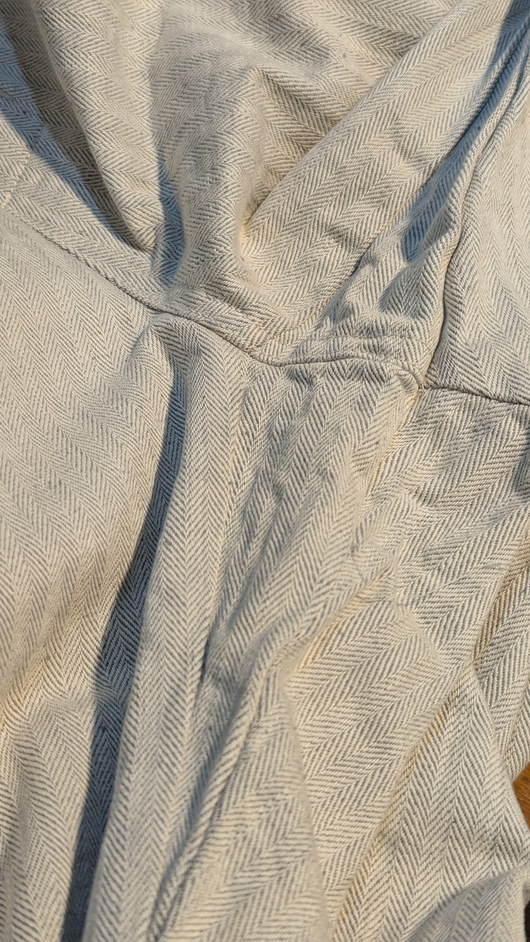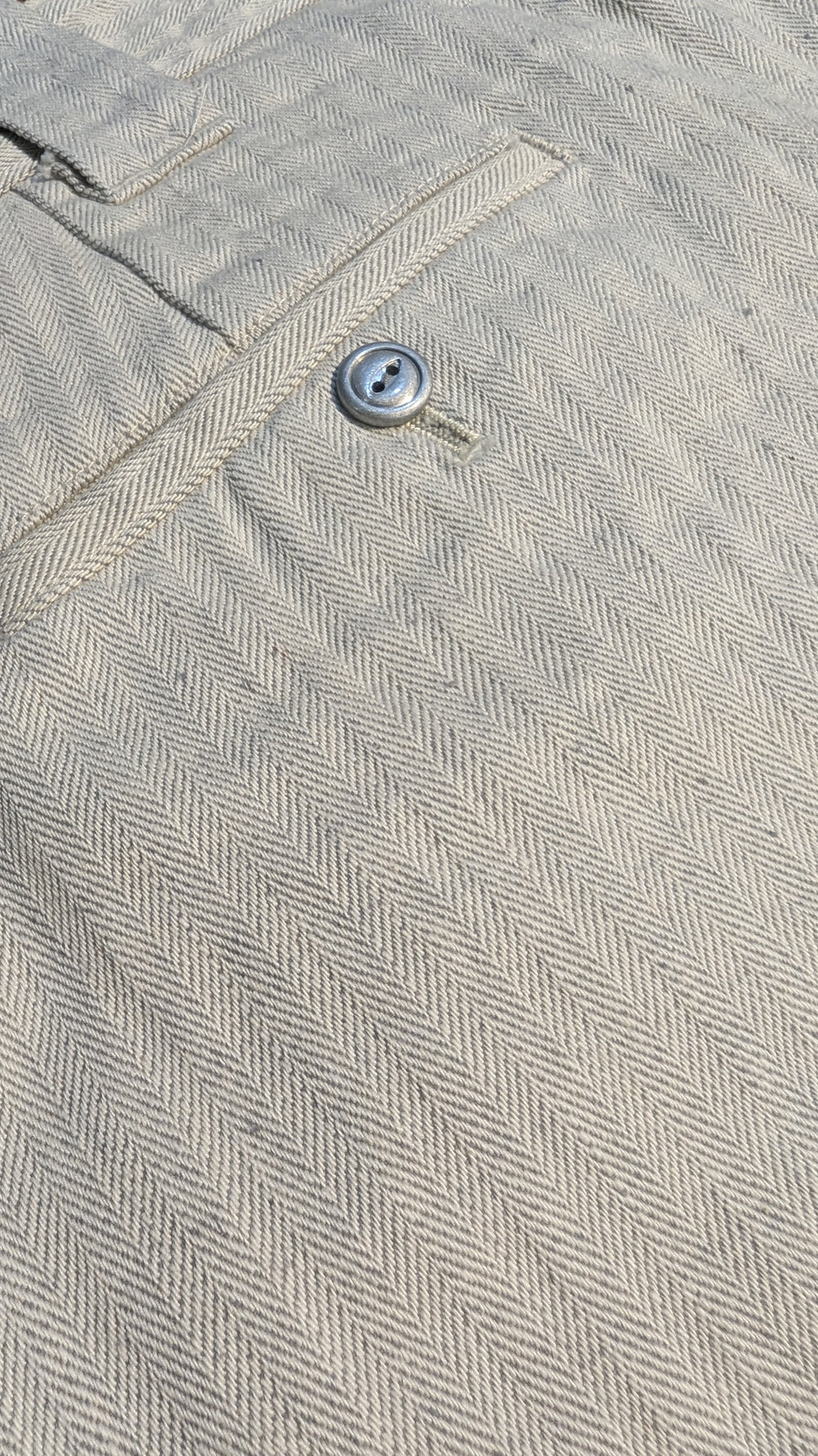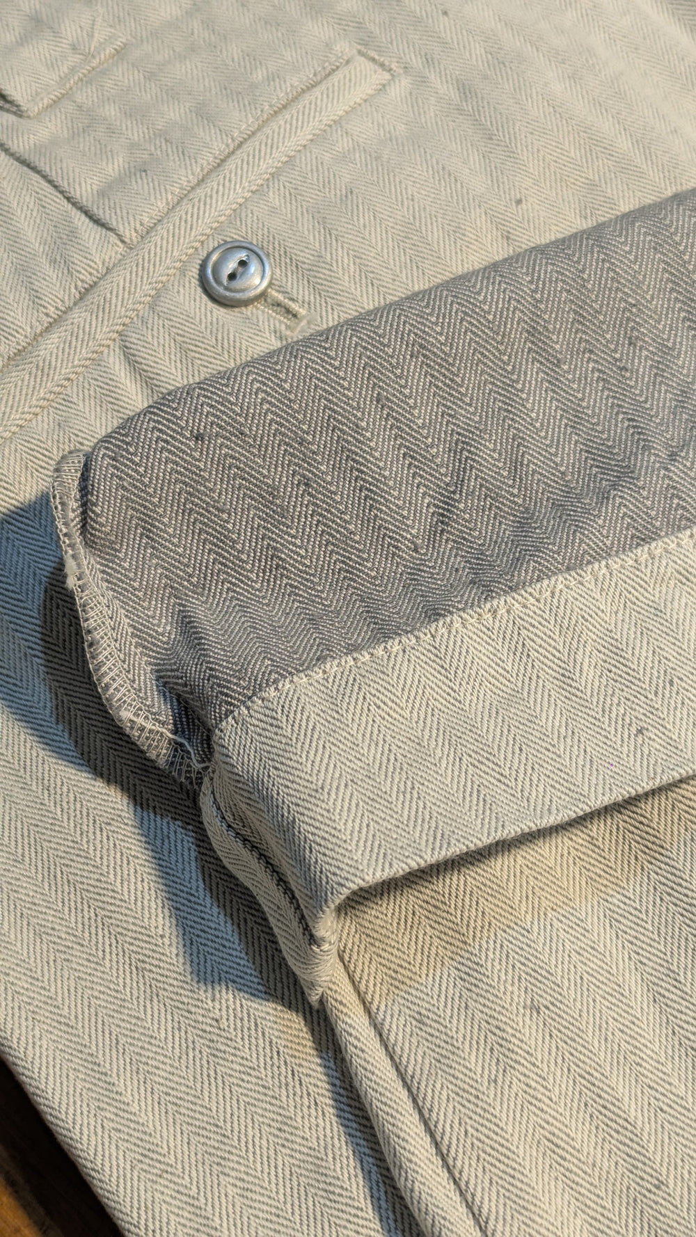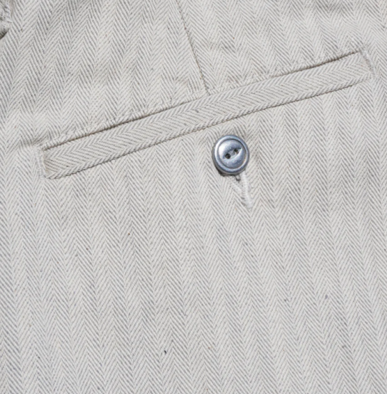 – Denim herringbone (à chevrons) 13 oz : bleu indigo / gris avoine