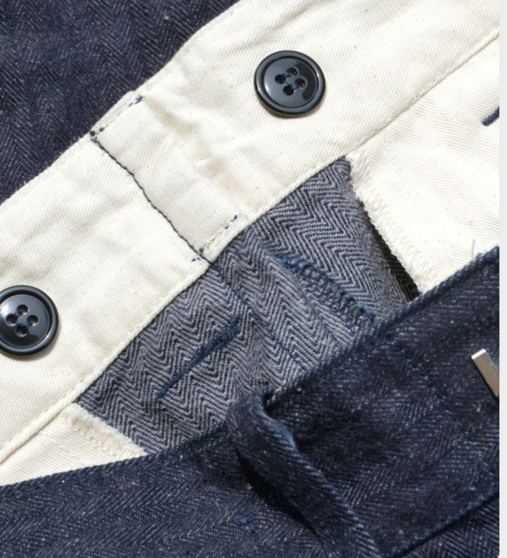 Pantalon Samurai Jeans SWC300WP en denim herringbone 13 oz. Coupe droite, taille haute, détails workwear japonais, confort optimisé et finitions premium.
